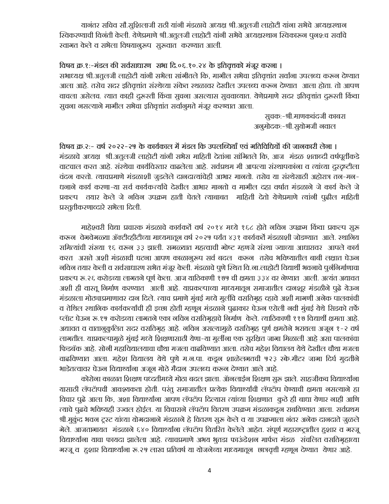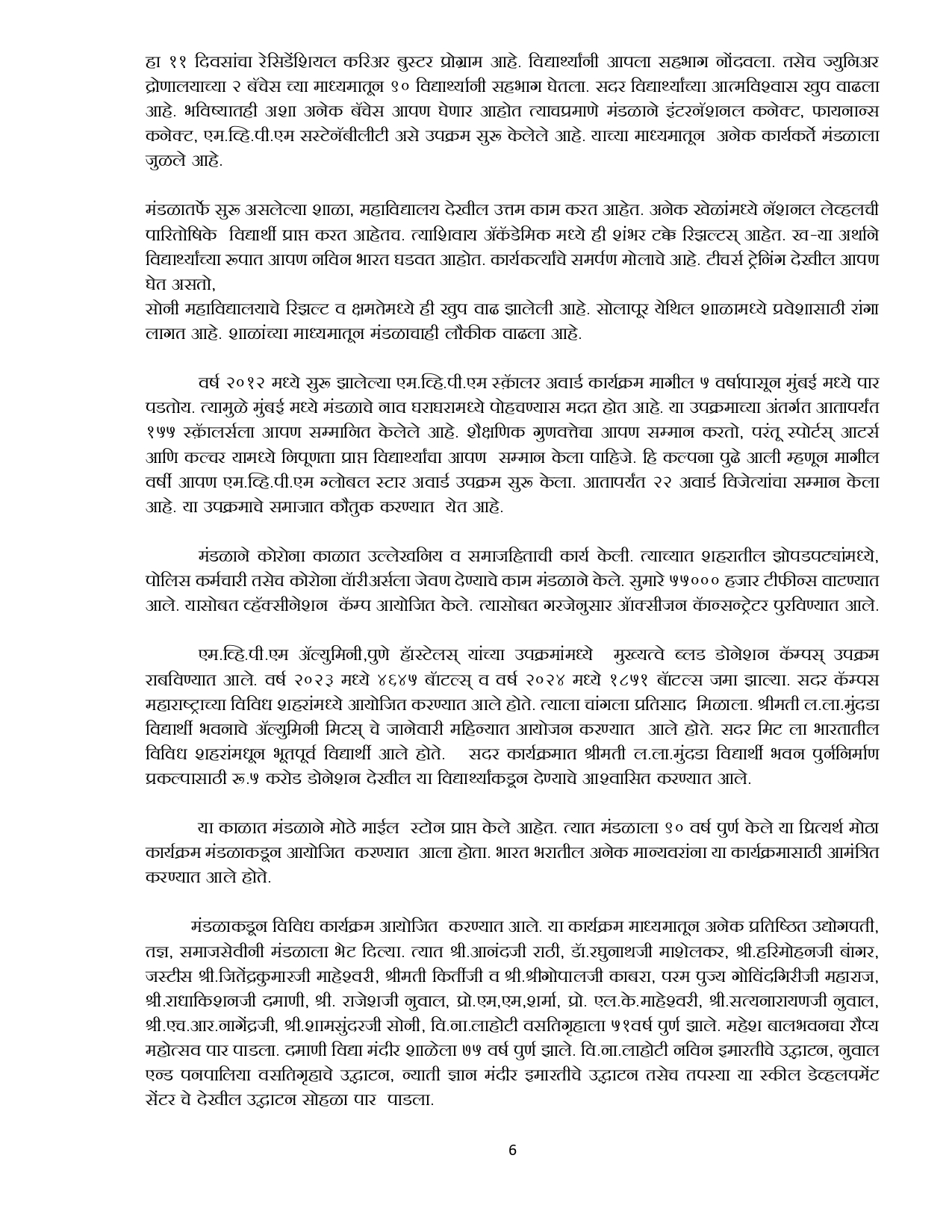 opportunities to groom and learn while making comfortable stay arrangements in Pune at MVPM’s hostels; guiding and mentoring as they move up the learning path and ensuring that they start earning a living by assisting them to set up a business or helping them with job opportunities. More